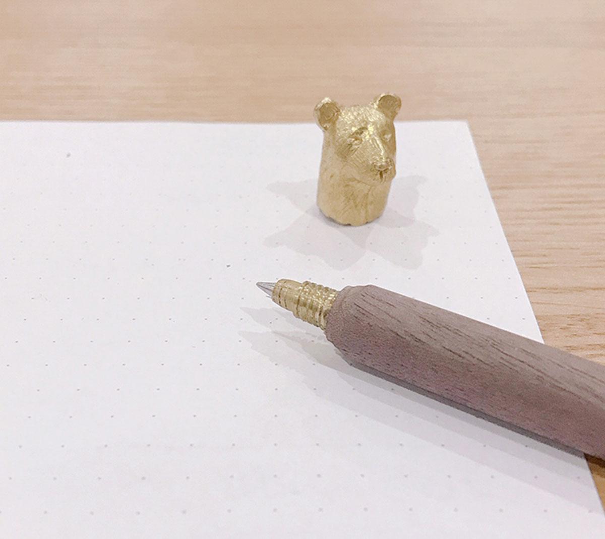 「eläin」のコンセプトを初めて聞いたときに、頭にパッと動物がイメージとして湧きました。使い手にと共に一緒に育って、時間の経過と共に味わいが増して、手にしっくりと馴染んでくるような筆記具ってなんだか動物のよう。本当に動物のデザインだったらより愛着も湧くのではないだろうか。そんなイメージからデザインと設計に携わりました。筆記具の素材は木材と真鍮のみで、環境に付加の少ない持続可能な素材にこだわって作られています。またパーツはすべて取り換え可能で、どこか一部が悪くなってしまっても、分解して治して使えるように設計しました。動物のように愛着を持ってずっと使ってもらえる筆記具となりますように。